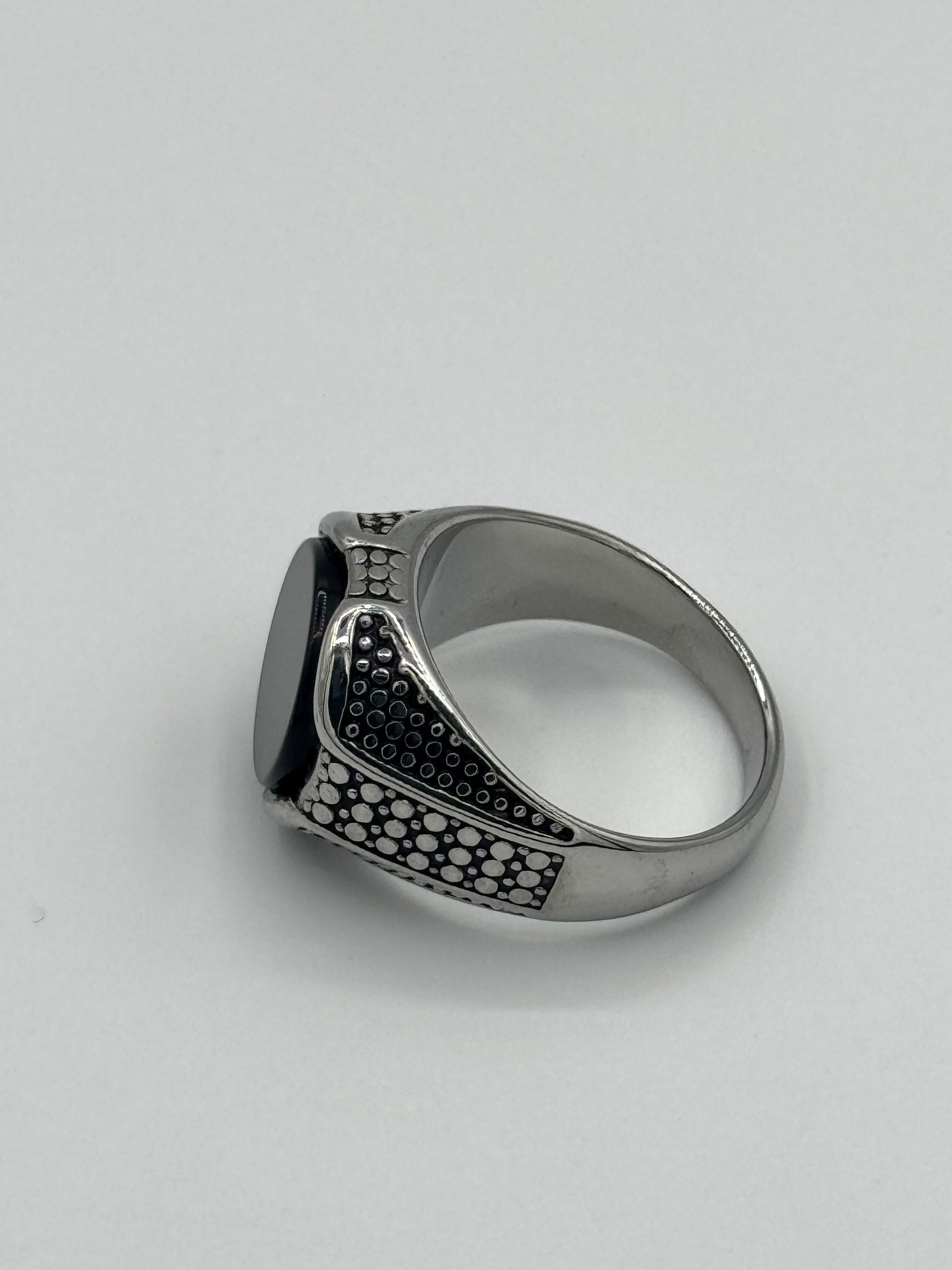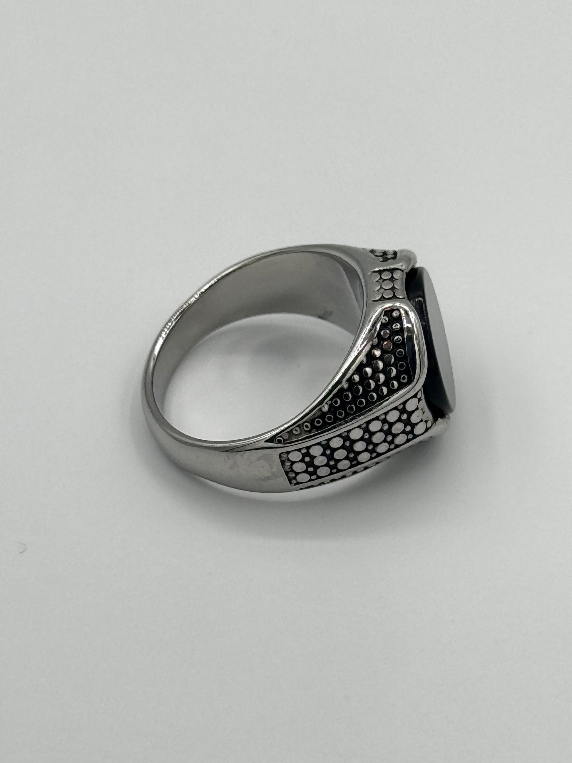 Men’s Regal Silver Stone Ring | Textured Heritage Design
