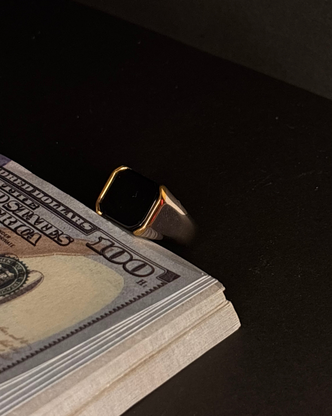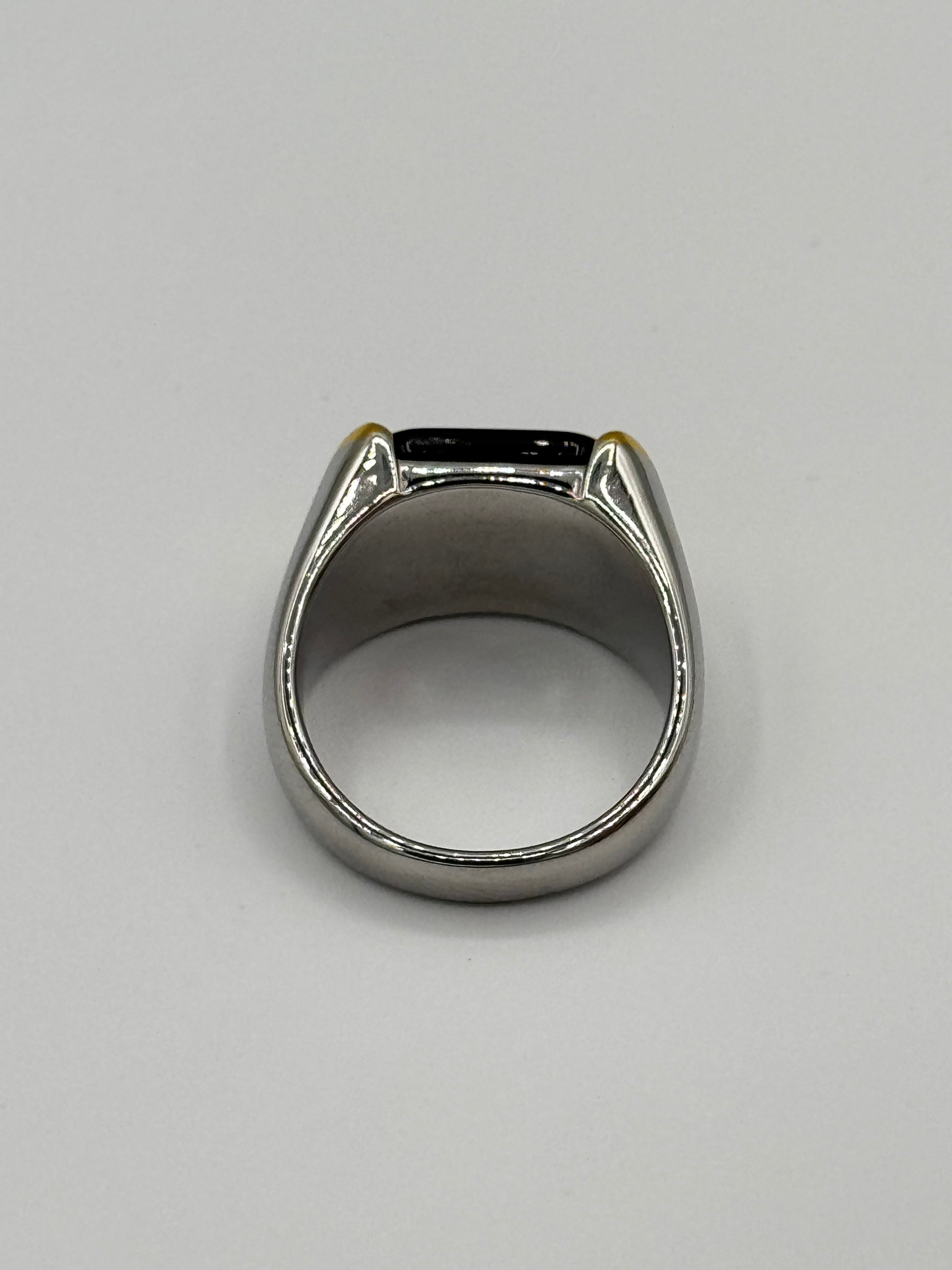 Modern. Regal. Striking. The Men’s Royal Stone Ring blends timeless silver craftsmanship with bold gold detailing around a deep black centerpiece. This dual-tone design creates a powerful statement of elegance and strength, perfect for men who carry a touch of royalty in their everyday style.